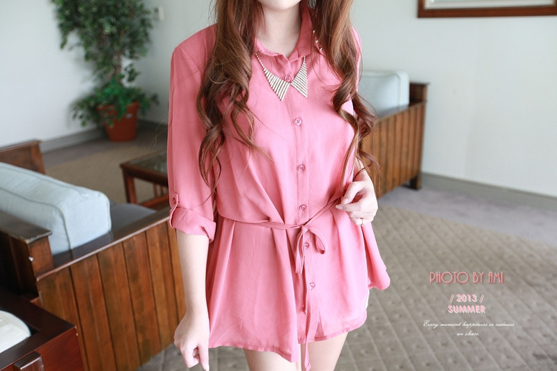 輕柔的材質和有點嫩嫩的粉橘色非常耐看又實穿 >///