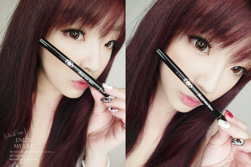 不需要搖動筆身,只要先把筆頭朝下放置就自然會有濃黑眼線液囉!